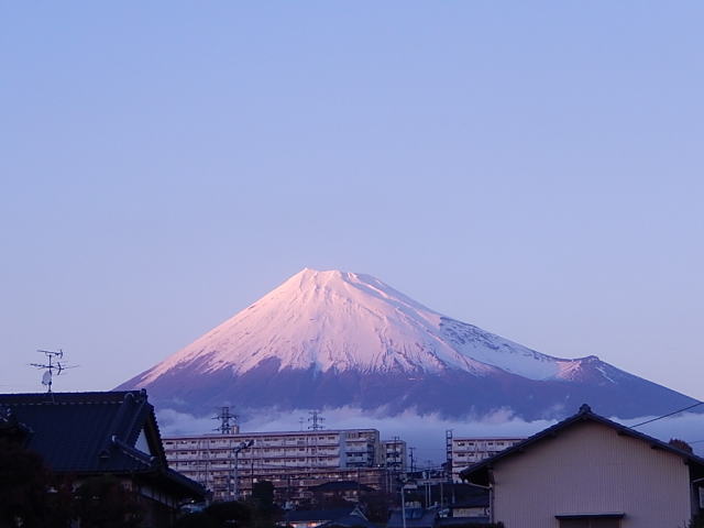時々富士市内から見える富士山をブログにアップしていますが、今回は天気の良い夕方の冬の夕方パターンです。