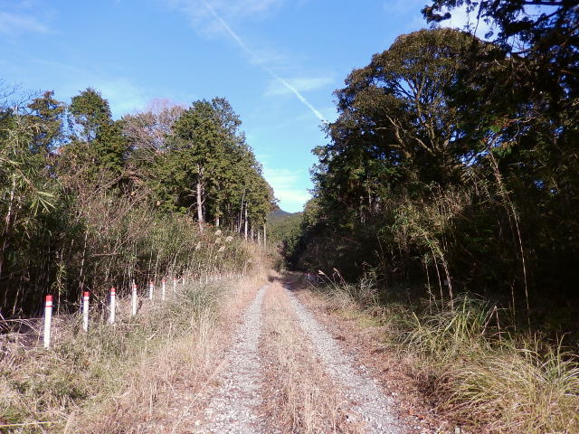幅が広くて整備の行き届いた林道は一般車の進入は禁止です。なので人気は無く静かでいいのだけれど、愛鷹植林地帯を延々縫って走る林道に見通しは無く、つまらない道です。で30分ほど歩いたら飽きてしまいました。もうちょっと事前調査をして置くべきでした。
