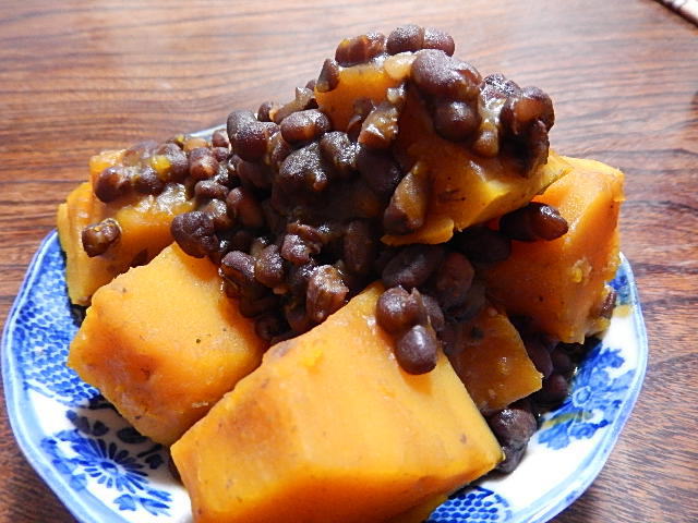 かぼちゃに小豆を合わせたのを作ってもらいました。いとこ煮と言うらしいけれど、ネットで調べたら地方によっていろいろあるみたいです。でも愛媛県では食べなかったなぁ・・・・・