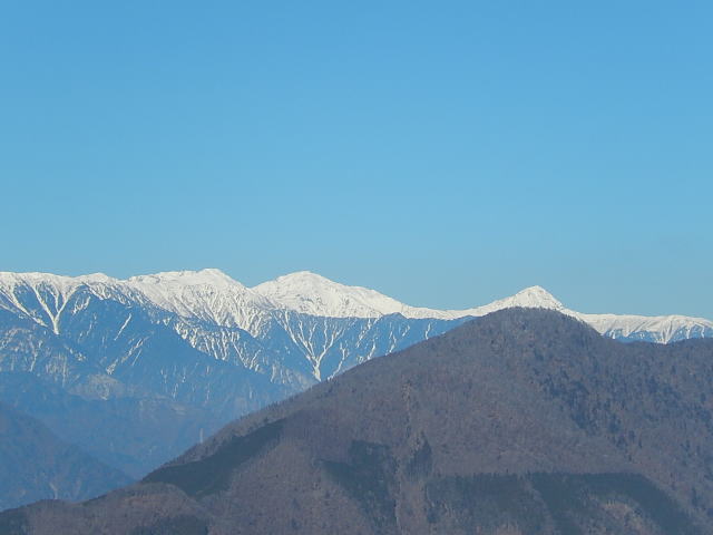 北側展望台までは林の中を歩いて数分です。特に施設があるわけではないのですが、とにかく眺望がすばらしい!この景色は日蓮さんも見た景色とほぼ同じだと思うと歴史を感じます。日本の山で二番目に高い北岳もしっかり確認できました。で、気になったのは左方向に見える七面山・・・・帰って地図で確認したら、ちょっとした発見がありました。