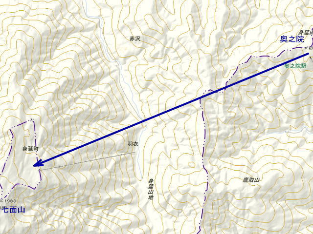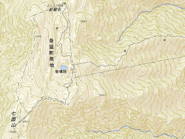 七面山 ・・・・そういえば登山の好きなお客さんから聞いたことのある山の名前だという事を思い出しました。奥之院から七面山へは登山ルートになっているそうです。でもただの登山ルートではないようです。国土地理院のネットサービスで確かめてみたところ?!身延町飛地ってのがあります。