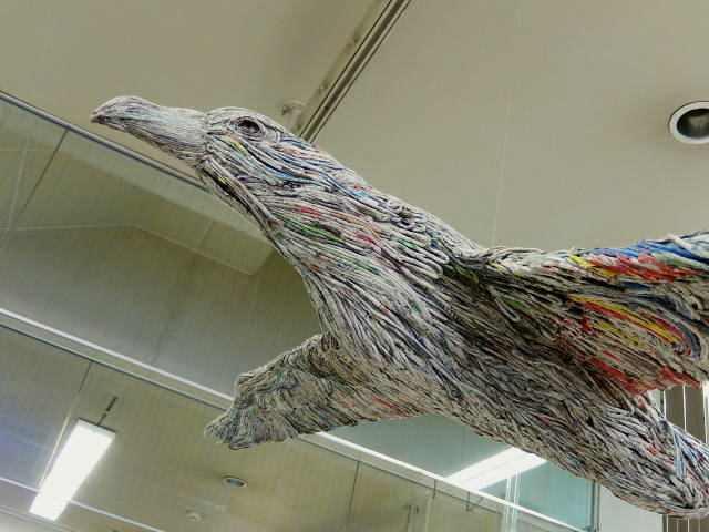 これらの作品に使われているのはすべて新聞紙です。新聞紙を細い管状に巻いたのをつかって造形しています。圧巻です。
