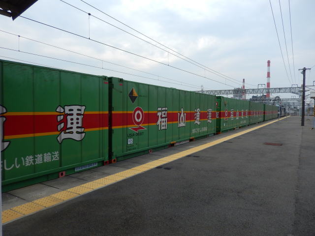 2015年6月26日2021年3月30日 57usagi 貨物列車清一色 2015 時々使うJR吉原駅のホームで見る朝の上り貨物列車。以前は様々なコンテナを混載していたけれど、最近は一色になっています。 今朝で2回目の目撃なのですが、積んでいるコンテナが全部「福山通運 」なのです。と言う事でさっそく福通のHPを覗いて見たら、納得でした。 例のコンテナ貨物列車は福山通運とJR貨物 とで提携している「福山レールエクスプレス号」だそうで、2015年3月30日からの運用だそうです。 共有: クリックして X で共有 (新しいウィンドウで開きます) X Facebook で共有するにはクリックしてください (新しいウィンドウで開きます) Facebook いいね 読み込み中… 関連