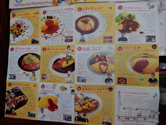 なぜ日高村でオムライスかと言うと、2ヶ月ほど前に見たNHKの全国ニュースで取り上げられていたのです。でもその時は(なんで日高村でオムライス街道なの?)と思ったのですが、そういえば何回か行った時になんども食べていた事を思い出しました。自然にね・・・・