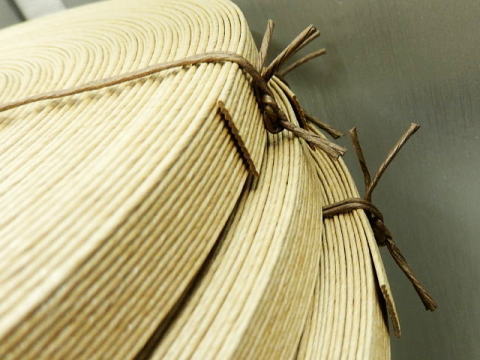 ○流通している手芸用クラフト紙バンドの原紙は、ほぼすべて静岡県産です。製紙会社は2社(最近、あと1社静岡県の製紙会社が抄き始めたらしい)です。
