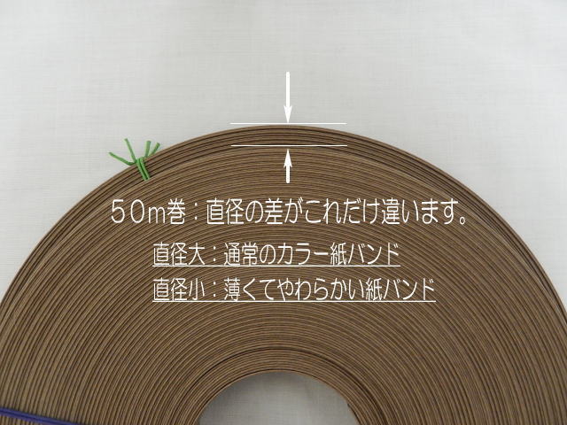 ところが、今回薄くてやわらかい紙バンドが出来てしまったのです。なぜ薄い紙バンドが出来たのか?原因をすぐに見つけ、その後は通常規格で製造していますが、兎屋が気付くまでの2~3日の間に作られた紙バンドは売らなくてはなりません。・・・・う~~~~ん、どうしよう?