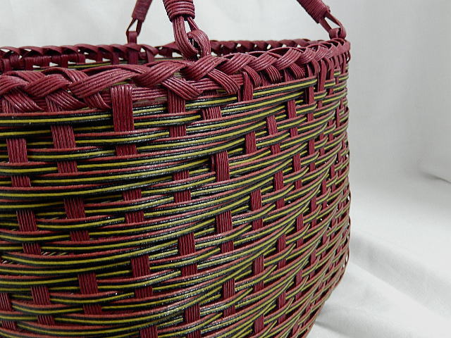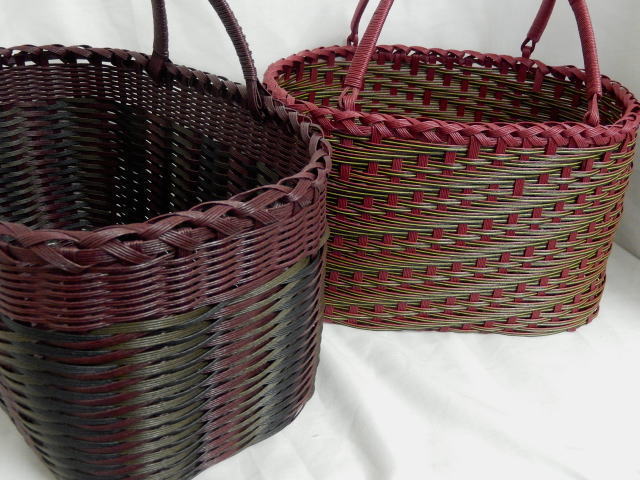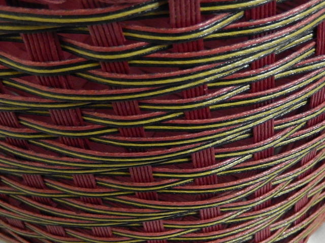 カラー単色1色でイメージを作る事は容易ですが、複数色の紙バンドを割きながら隣り合わせで使用しカゴ・バッグを作ると、見本チップで確認した色とは違っている事が多々あります。これは色相対比と言われている事です。