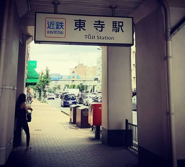 東寺は京都駅から歩いて12分ぐらいの所にあるのですが、とにかく暑い日だったので、消耗を避ける意味で、京都駅から近鉄大阪線に乗り一つ目の駅「東寺」を利用しました。
