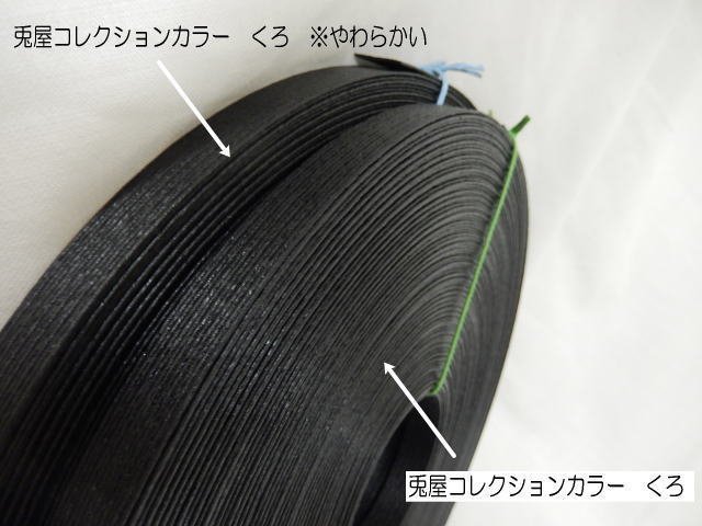 と言う事で、今度は兎屋コレクションカラーの「くろ」のやわらかい紙バンド(※こちらは薄くないです)をちょっとだけ販売して見ます。※お買い上げ下さった方の中で、使って見た感想をお教え下さるとありがたいです。