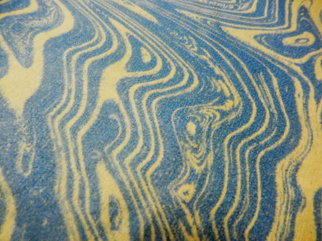 試に翻訳ソフトにマーブルを入れて見ると、マーブル→Marble→大理石と出ます。更に大理石を画像検索すると、なるほど大理石の表面に複雑な模様が出ているのがわかります。marble paperでも画像検索をして見ると大理石模様の紙が沢山あるのがわかります。このマーブル紙は昔から西洋で作られている紙です。私としては、この紙こそ「不規則模様の紙バンド」に出来る紙だと考えるのですが、そんな紙は世の中には有りません。さてどうする・・・と言うのが長い間の懸案だったわけで、それを実現したいが為の旅を兎屋がしていたという事です。