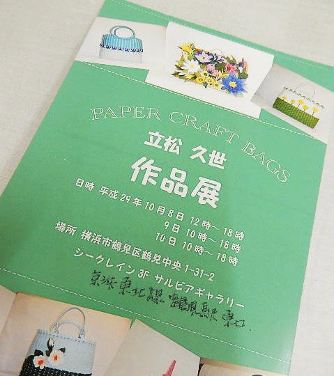 そのようなお得意さんに対して兎屋のやるべき事は、「高品質手芸用紙バンド」を作り続ける事だと思っています。これしかない?→これしか出来ない?→いや!これがしたいのです。そんなお客さんが、3年振り?に神奈川県で作品展を開催されます。