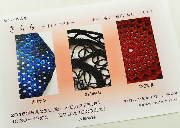 兎屋がお世話になっているひさままさん達3人が紙バンド手芸作品展を開催されるそうです。展示される方は「アサナンさん」「あんゆんさん」「ひさままさん」