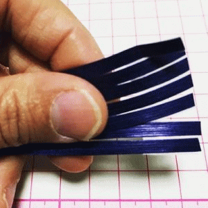3)メンディングテープと極細紙バンド(テープが貼ってある状態)で割くと裏側にテープが付いた状態の極細紙バンドになります