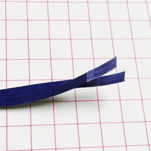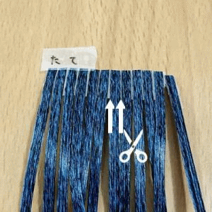1)カットしたい長さの所にマスキングテープを貼って切ると端が丈夫になり、始末の時に割れることがありません。これはリボンワークの方法で、柔かくて切りにくいリボンをカットするときに行うことがあります。