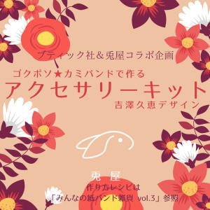 この度、ブティック社さんとのコラボ企画という事で、ひさままさん考案のゴクボソ★紙バンドのキットを兎屋から発売させて頂く事になりました。これは兎屋にとってとても大きな事で、高知県の製紙会社さん・静岡県の紙加工会社さん・ゴクボソ開発にご協力下さった千葉県のひさままさん・ゴクボソ★紙バンドを取り上げて下さったブティック社さん・極細紙バンド発売キャンペーンに協力頂いた皆様、そしてゴクボソ★紙バンドを試して頂いたお客様達のお蔭だと感謝しています。