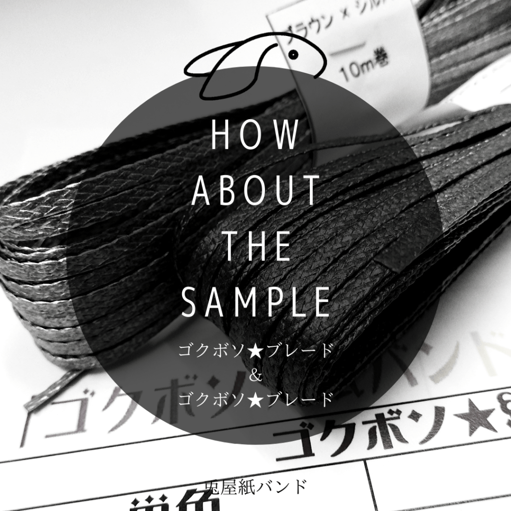 配布品の内容は、①ご案内状 ②参考見本サンプル(ゴクボソ★紙バンドも貼っています)③試し用の材料(50cm程度)です。