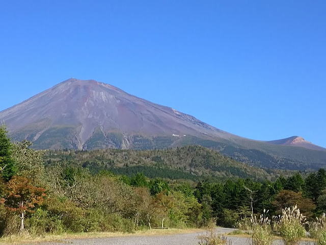 富士市内からは車で45分、あっという間に涼しくて人気のない広~~~い駐車場に到着です。この日はあいにくの曇り模様で、肝心の富士山を眺める事は出来ませんでしたが、4年前に行ったときの写真が ←です。秋だったので紅葉していました。