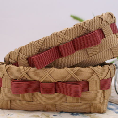 Iさんとは兎屋が藤沢市辻堂新町で始めた頃に知り合いになりました。手芸好きのIさんの自宅と兎屋とはたった200mしか離れていなかったので、創業してすぐに兎屋を見つけられたという事です。そしてまだ紙バンド手芸があまり知られていない頃に、沢山の作品を作ってくれました。Iさんも紙バンド手芸を知ってはいたけどやった事はないという状況でしたが、様々な手芸を楽しんで来られた方なので、すぐにマスターし、紙バンドを材料にいろいろアイデアを考えて頂きました。
