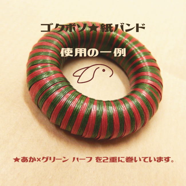 手芸として、ウッドリングやプラスチックリング等にさまざまな素材(布・各種糸・革・紙・金属)を巻いて、装飾品などを作って皆さん楽しんでいますが、現在ゴクボソ★紙バンド推奨の兎屋が巻くと当然こうなります。まぁ想定内ですよね。という事でどうぞお試して見てください。