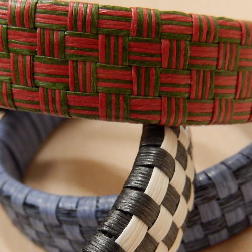 単色→カスリ→パール→ストライプ のカテゴリーそれぞれに豊富なカラーでご案内しているゴクボソ紙バンド。バングル作品画像を並べて見ましたので、製作の参考にしてください。