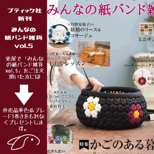 みんなの紙バンド雑貨vol.5 発売スタートです。そして今回も兎屋紙バンドを使ったレシピが掲載されています。
