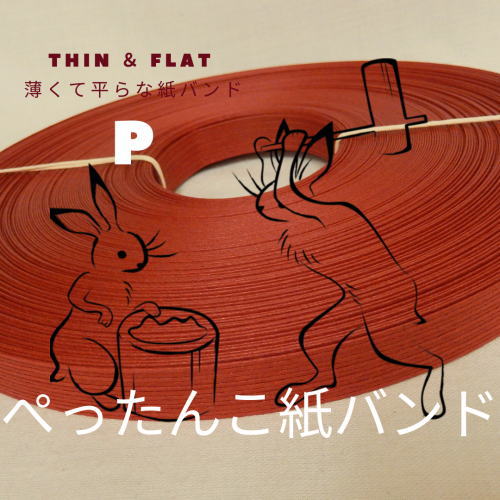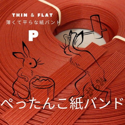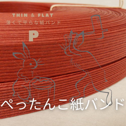 従来の手芸用紙バンドをぺったんこにしているだけなので糸数は12本、重さも従来の紙バンドと変わりません。先に試作販売していた「軽量紙バンド」とは全く違います。見た目が薄いので軽いかも?と思いながら持ち上げると、ズッシリ重たく感じます。