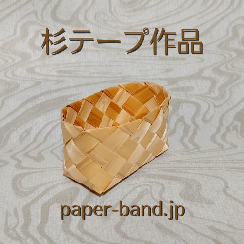 手持ちの杉テープは講習会で使った杉テープよりもかなり薄く、完成作品は柔らかいです。つまりこの杉テープは作品を選ぶと言うことです。写真で見ると薄い感じがお分かりになると思います。