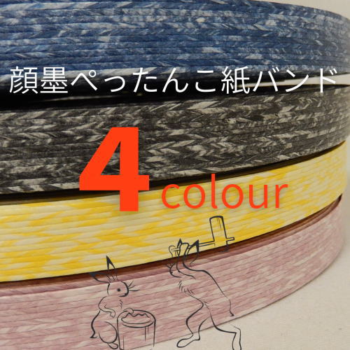 色は「くろ」「あい」「たんぽぽ」「くすみピンク」です。この独特な紙バンドには以下のような特徴があります。