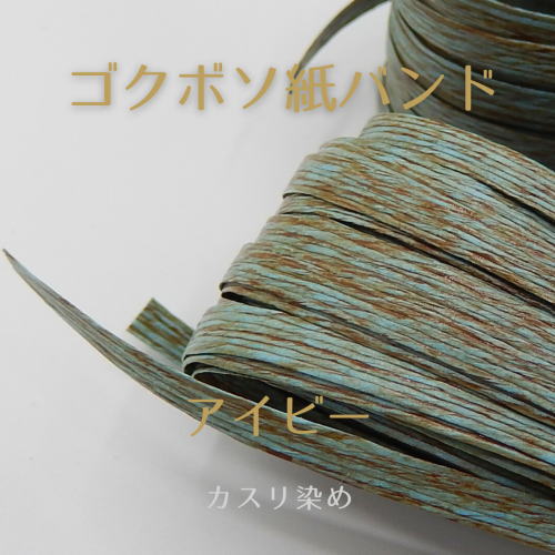 ゴクボソ紙バンドとは、細糸を6本並べて製造した手芸用紙バンドの事です。細糸を使用していますので、しなやかな手触りとなっていますのですが、小品作りに適しています。接着には一般的な木工用ボンドではなく、速乾アクリア(アルテコ社)がおすすめです。←兎屋ショッピングカートでも販売中です。