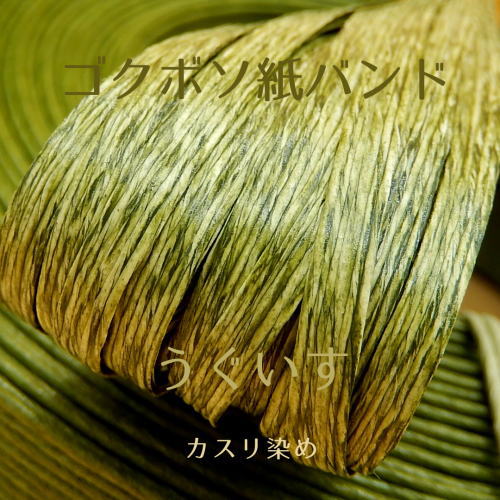 兎屋紙バンドのゴクボソ紙バンド(カスリ)を、画像と共にご紹介しています。3回目のイメージ色はカスリシリーズから「うぐいす」と「オーク」です。