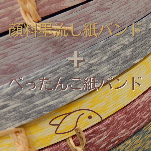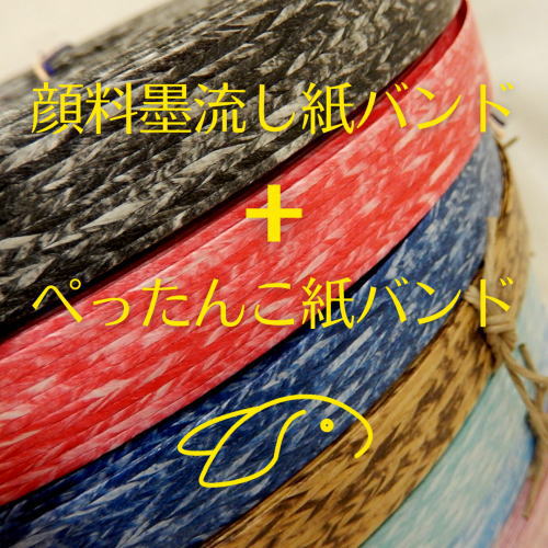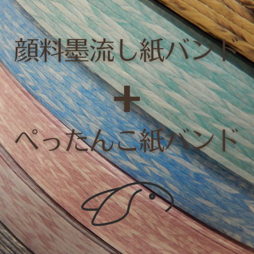 久しぶりに顔料墨流しぺったんこ紙バンドを発売します。文字通り顔料墨流し紙バンドにぺったんこ加工を施している手芸用の紙バンドです。