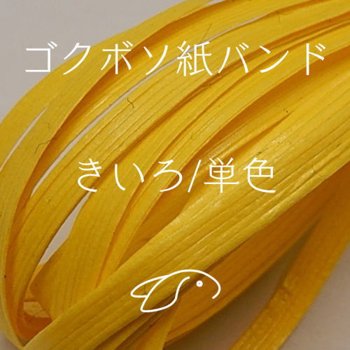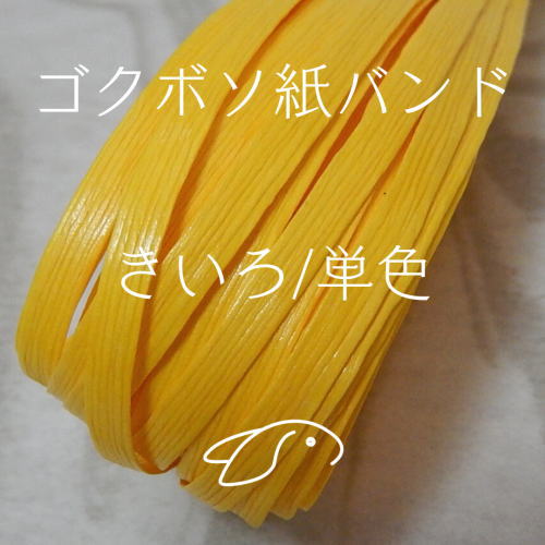 兎屋の手芸用オリジナル紙バンド、ゴクボソ紙バンド(単色)を画像と共にご紹介しています。19回目はゴクボソ紙バンド(単色)シリーズの「きいろ」色です。単色シリーズのスタート第1号はベージュ色からのご案内です。
