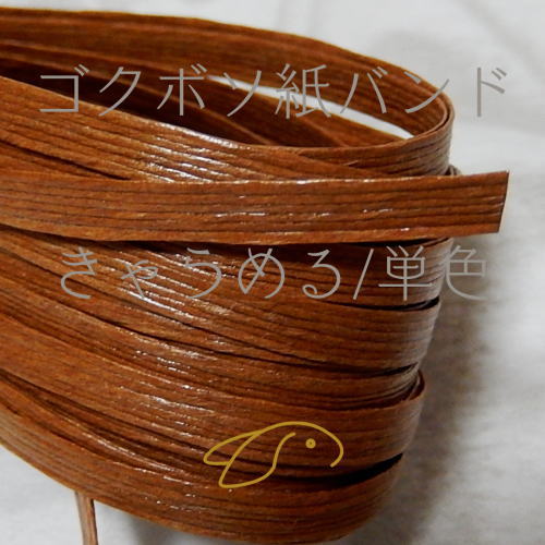 兎屋の手芸用オリジナル紙バンド、ゴクボソ紙バンド(単色)を画像と共にご紹介しています。23回目はゴクボソ紙バンド(単色)の「きゃらめる」色です。