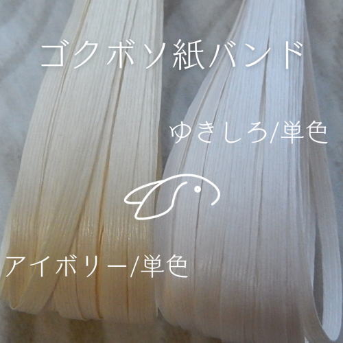 兎屋手芸用オリジナル紙バンド、ゴクボソ紙バンド(単色)を画像と共にご紹介しています。26回目はゴクボソ紙バンド(単色)の「ゆきしろ」です。ゴクボソ紙バンドのご紹介①~⑩は(カスリ)・11~17は(パール)・18~は(単色)の各シリーズ色ご紹介となっています。