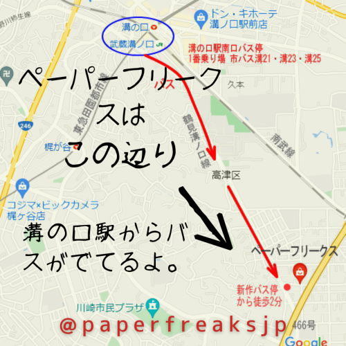 場所:paper freaks 高津区新作4丁目11 – 4