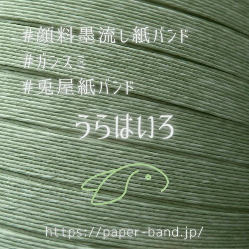 2002年兎屋スタート時から追いかけていた、不連続模様の紙バンド作りを実現した紙バンドです。顔料染めにたどり着く前には、特殊加工による マーブル紙バンド と言うのを作っていましたが、風合いと編み具合に特別感が無く、数年でやめました。