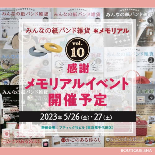 これはブティック社のシリーズ本「みんなの紙バンド雑貨」vol.10発刊 を記念して行われるもので、このような紙バンド手芸の催しは、過去ありませんでした。