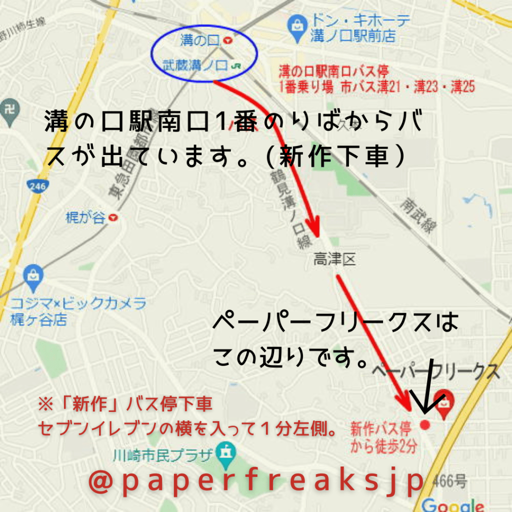○溝の口駅南口バス停1番→新作バス停徒歩1分