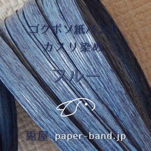 「ブルー」=名前は簡単だけれど、色に特徴があります。深みとか、爽やかさではなく、それはクレパスを塗り重ねた様な「こってり感」です。これはゴクボソ紙バンドの一面です。同様にこってり感がある色は「りんどう」や「アイビー」ですが、不思議な事に、「こってり感」はカスリシリーズにしか現れません。そして紙バンドの色とは思えません。紙の不思議です。