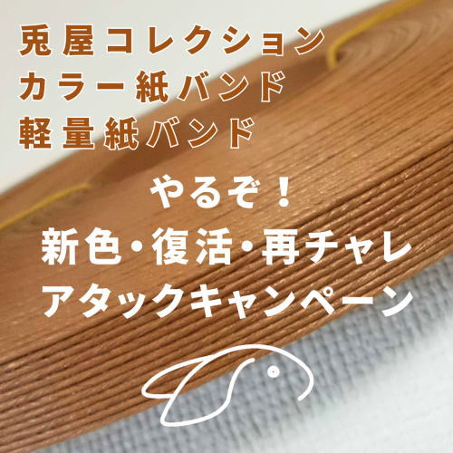 そこで!ご案内していた、新色3色(1色は復活色)と、再チャレンジの「軽量紙バンド」発売記念、そして兎屋紙バンドのお客様の家計応援の意味も込めまして、暫くの間、メイン商品にて10%の割引きキャンペーンを致します。暫くの間……です✌️
