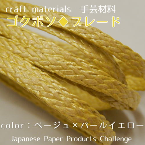 ◆特別な紙製の極細糸をブレード状に編んだのが、手芸用のゴクボソブレードです。紙は強靭な高知県製紙会社製で、極細ですが引っ張り強度があります。そして極細加工と紙バンド加工は、静岡市の老舗紙加工会社で行っています。