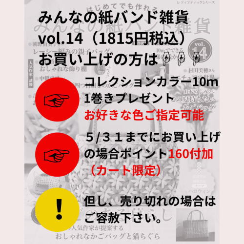 4月30日発売「みんなの紙バンド雑貨vol.14」は、兎屋ショッピングカート(SC)で販売致します。