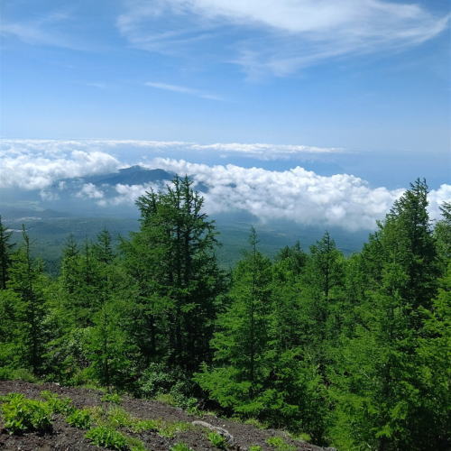 まだ富士山の山開き前なので、パーキングまで車で行くことが出来るのです。で、やっぱり来てみるものです。いつも見上げている #愛鷹山 が下に見えるし、遠く #西伊豆 まで…いや雲見かな?見えるのです。ちょっとこわい位です。👀‼️