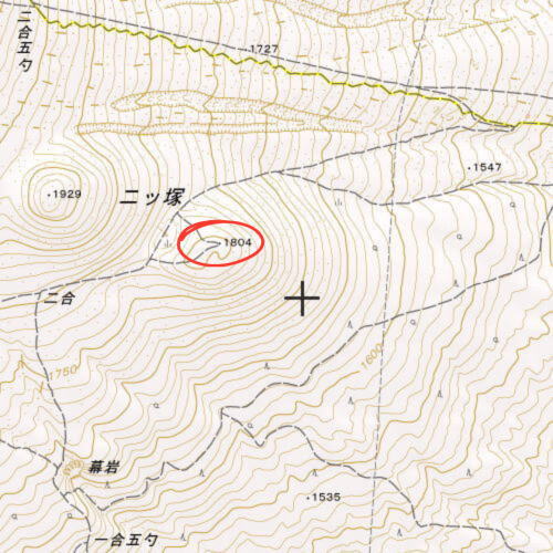 スタート→大石茶屋→下双子山(55分)→四辻→幕岩→樹林帯→御殿場口新5合目帰着。高低差は354m。