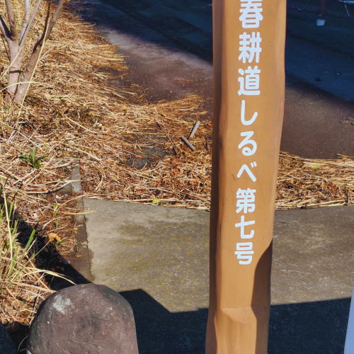 「ふじをか ●二十二丁」は富士市富士岡までの距離、二十二丁は約2.4km。道しるべ(富士市間門)から富士岡までの距離とあっています。